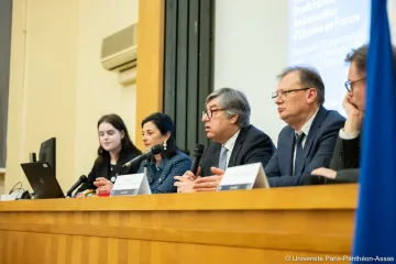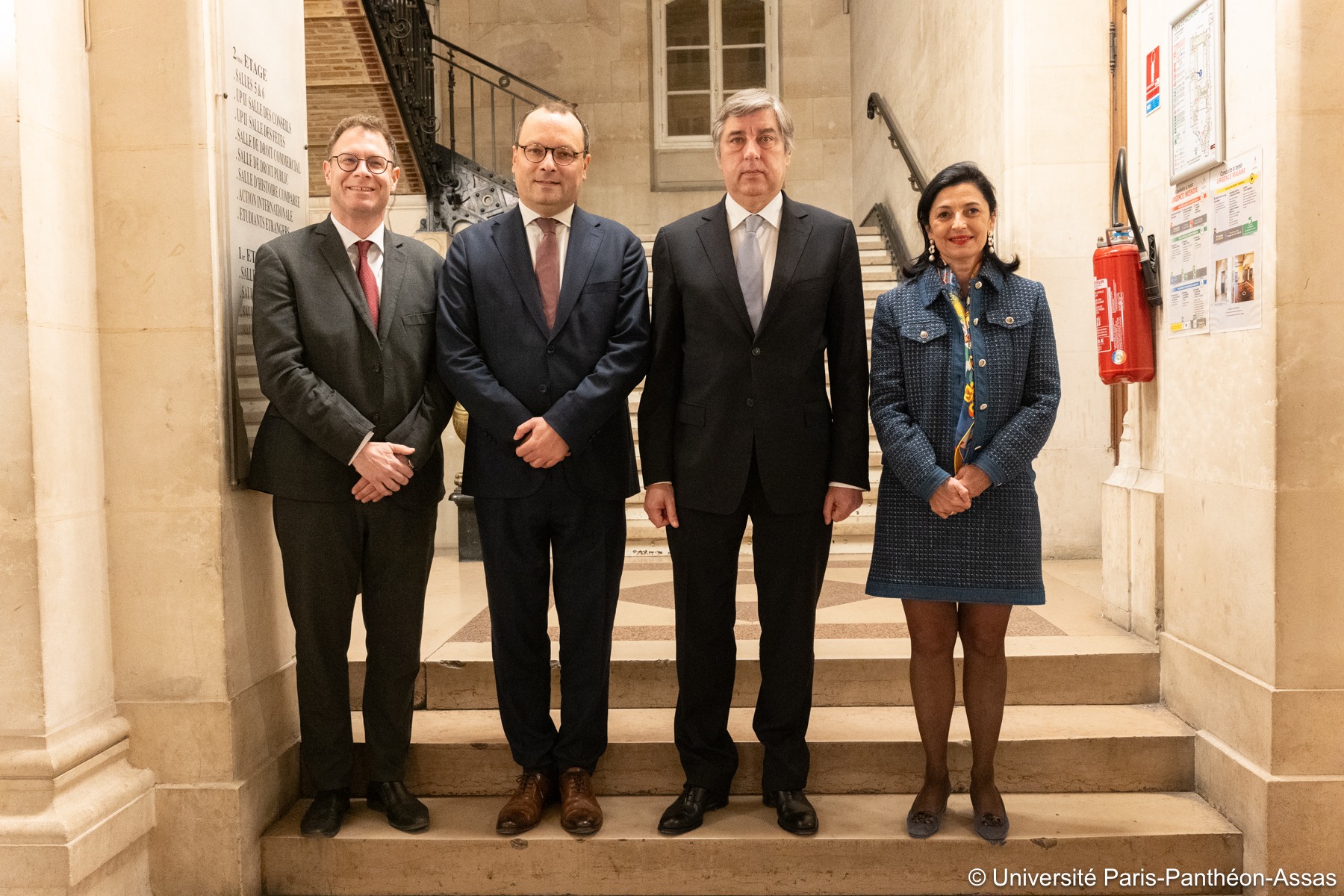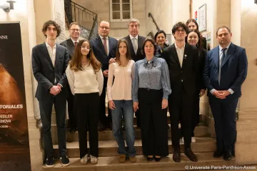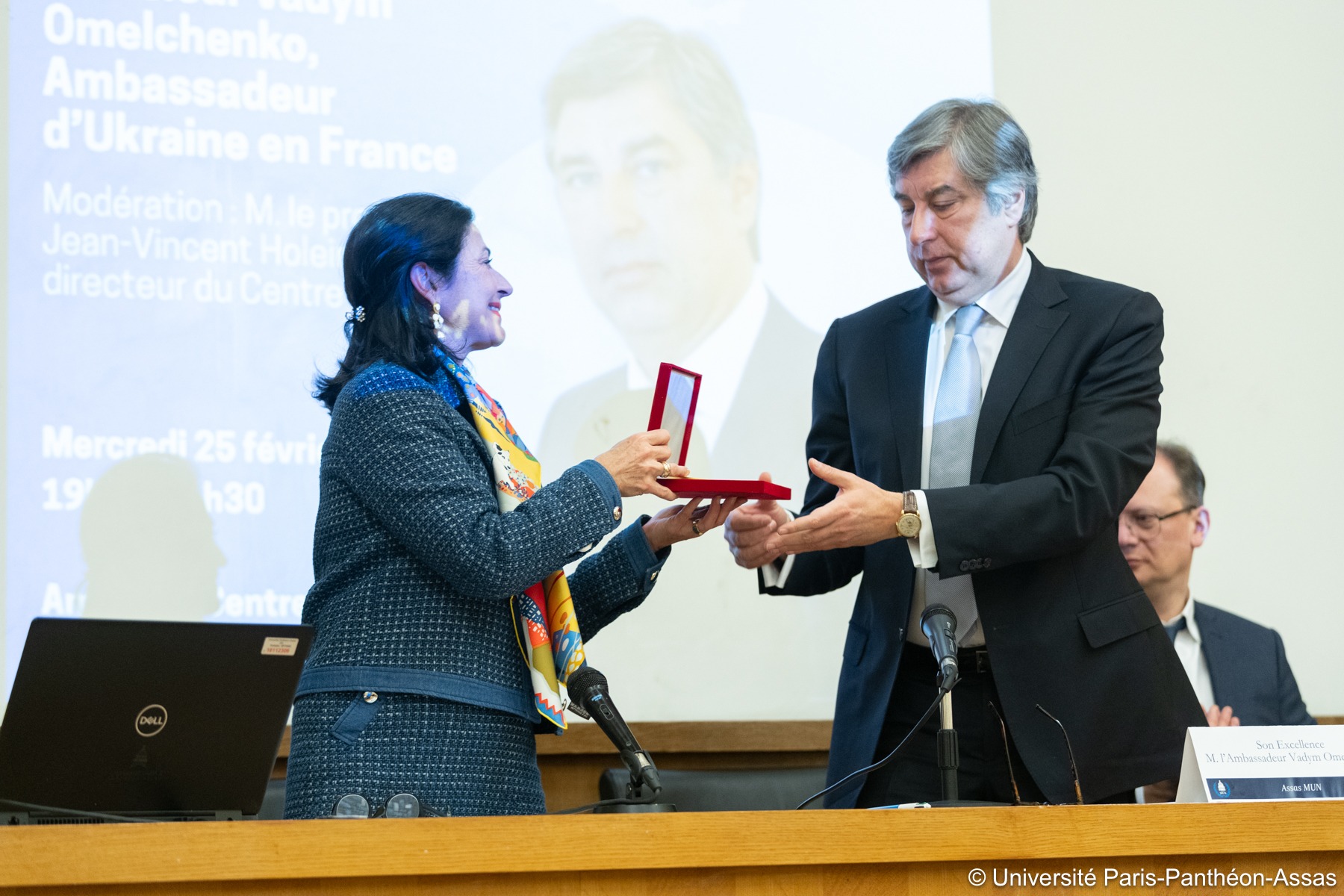 Emmanuelle CHEVREAU, vice-présidente en charge des affaires internationales, a introduit la conférence avant de remettre à son Excellence Vadym OMELCHENKO, la médaille de l'université, en témoignage de soutien d'attachement indéfectible aux valeurs de droit et de liberté que l’Ukraine défend avec courage.