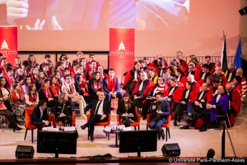 La soirée des masters, désormais ancrée dans la tradition de l'université, a mis à l’honneur les 98 étudiants ayant obtenu la meilleure moyenne de chaque formation de master de l’année 2024-2025. Ils ont été récompensés en présence du président de l’université, Stéphane BRACONNIER, des vice-présidents, du corps professoral, d’alumni, de leurs camarades de promotion et de leur famille. L’ensemble des disciplines était représenté : le droit, les sciences politiques, l’économie, la gestion et l’information-communication.